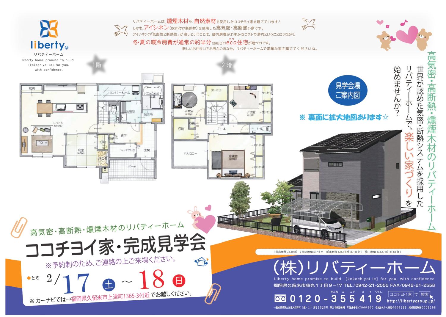 2月17日(土)、2月18日(日)久留米市上津町にて見学会を行います。