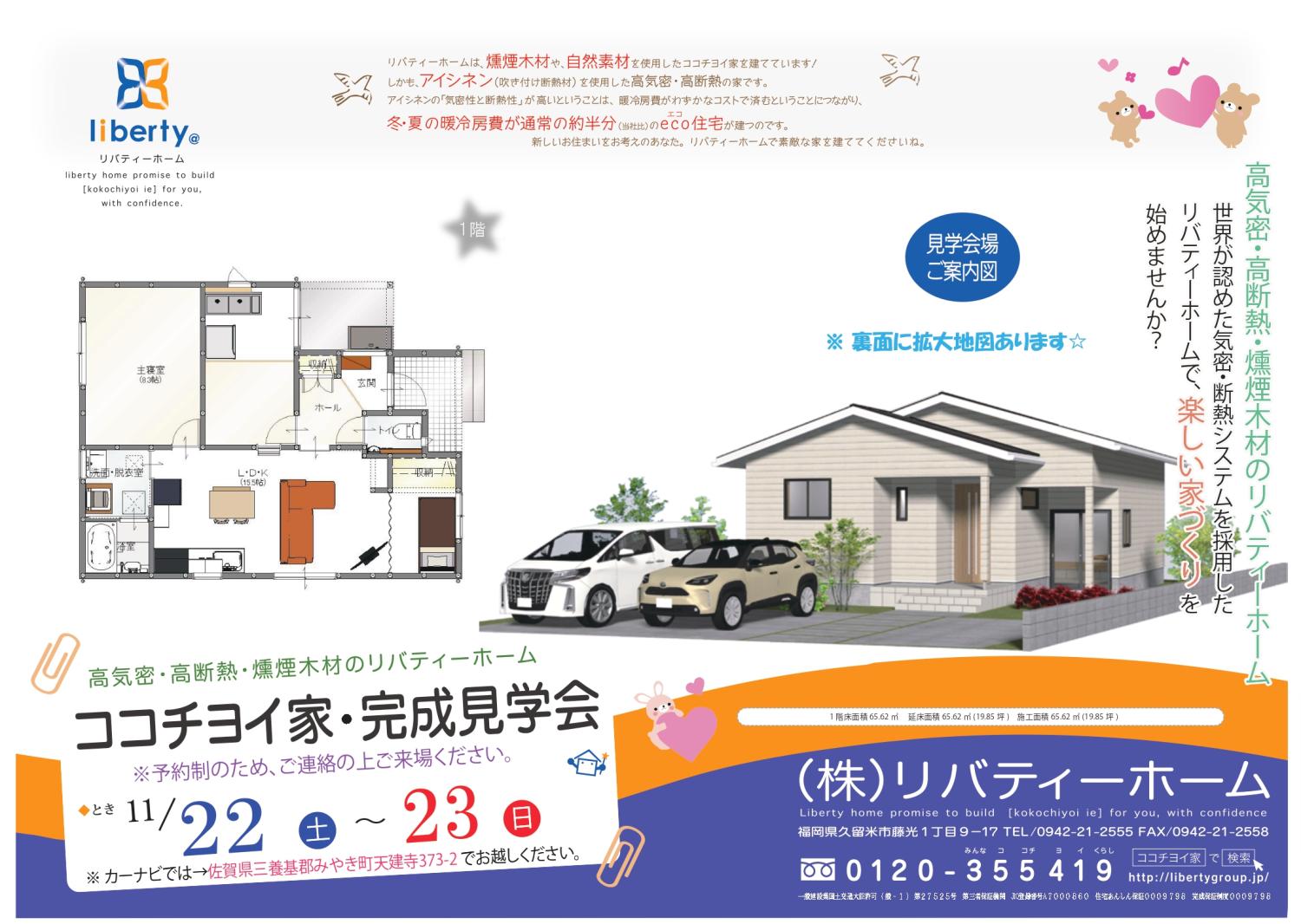 11月22日(土)、11月23日(日)佐賀県三養基郡みやき町にて見学会を行います。