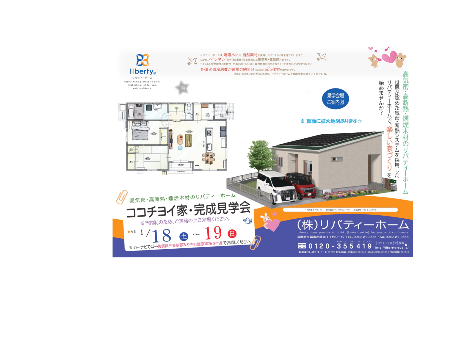 1月18日(土)、1月19日(日)佐賀県三養基郡みやき町にて見学会を行います。