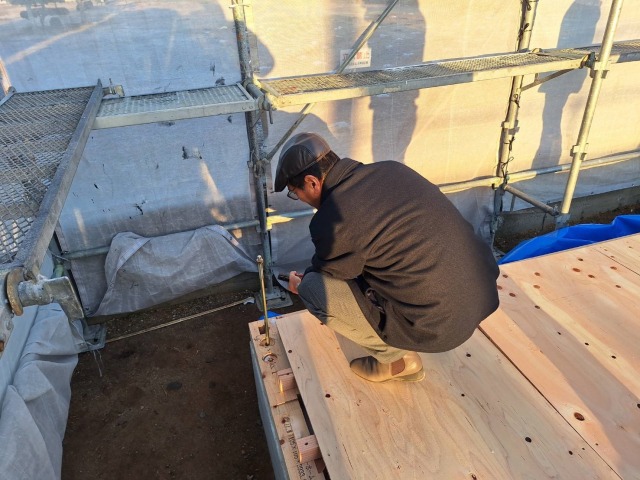 2月とは思えない暖かな晴天の中、上棟が始まりました。