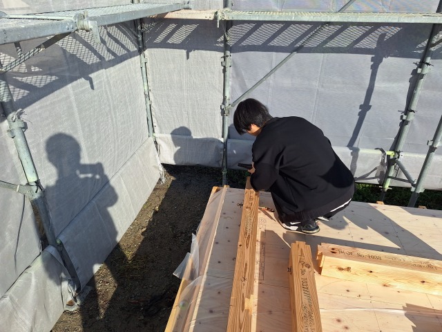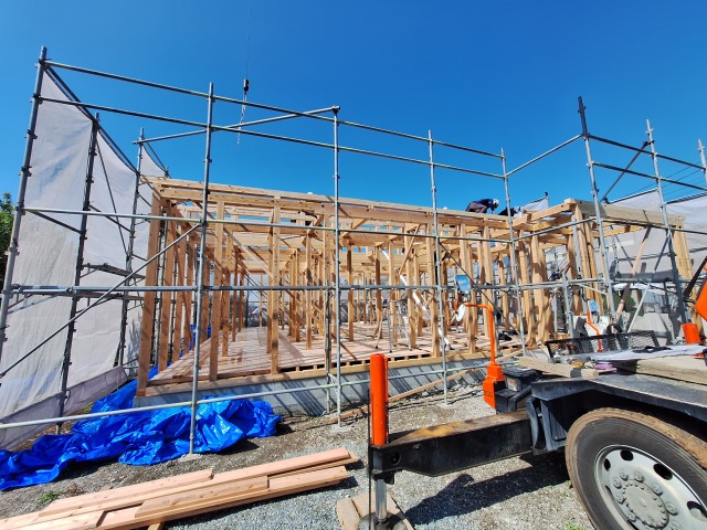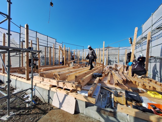 よく晴れて気持ちの良い日、上棟が始まりました。