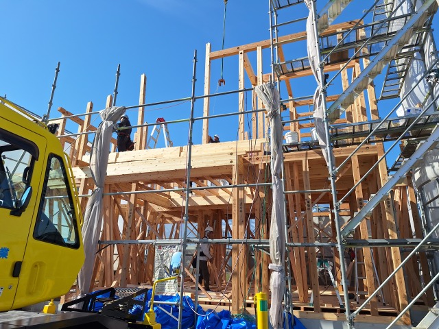 さわやかな晴天の下、上棟が始まりました。
