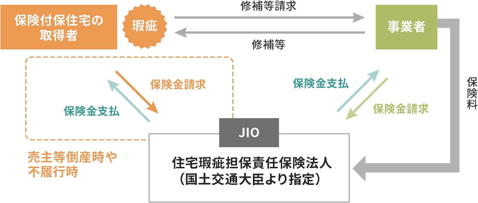 JIOは消費者を守る仕組みとして国土交通大臣より指定を受けた「住宅瑕疵保責任保険法人」です。